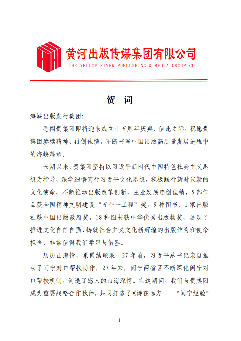 悉聞貴集團即將迎來成立十五周年慶典,值此之際,祝愿貴集團賡續精神、再創佳績,不斷書寫中國出版高質量發展進程中的海峽篇章。