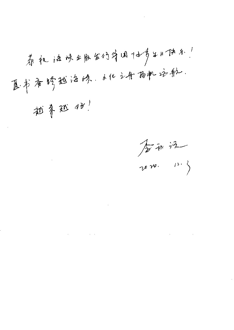 恭祝海峽出版發行集團十五歲生日快樂!愿書香跨越海峽,文化之舟揚帆遠航,越來越好!
