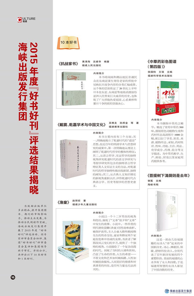 海峽出版發行集團 2015年度“好書好刊”評選結果揭曉