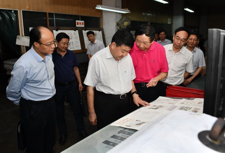 梁建勇一行先后走訪了福建新華印刷有限責任公司、海峽創意印刷中心以及福建新華發行集團圖書發行中心,參觀了書刊車間、裝訂車間、新印刷園區生產車間及倉儲物流車間,聽取了有關教材生產進度、印務企業整合重組、舊廠區收儲、新園區利用規劃以及倉儲物流改革等情況介紹,詳細了解集團在推進資源整合、促進企業轉型升級等方面所做的工作。