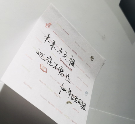 活動分別在店內(nèi)設(shè)置“余生第一天”主題留言墻,無論即將畢業(yè)的同學(xué),還是高一高二的學(xué)弟學(xué)妹,亦或是陪伴了三年的老師,都可在這里留下他們的心聲。得到消息的同學(xué)紛紛前往熟悉的書屋,尋找昨日校園時光的記憶,并在留言板上留言。同時,大夢書屋也為畢業(yè)生們準備了紀念書簽和購書優(yōu)惠等小驚喜。