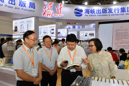 8月21日上午,第二十六屆北京國際圖書博覽會開幕,中共中央政治局委員、中央書記處書記、中宣部部長黃坤明視察福建展區。在中宣部常務副部長、國家電影局局長王曉暉,中宣部副部長梁言順,福建省委常委、宣傳部長梁建勇的陪同下,黃坤明仔細翻閱了習近平總書記在福建工作期間出版的著作和主編的圖書,饒有興致地參觀了福建出版70周年精品圖書展和兩岸融合發展優秀圖書展,仔細地聽取了福建省委宣傳部、福建省新聞出版局和海峽出版發行集團有關負責人對福建出版工作的介紹,對福建出版取得的成果給予充分肯定。