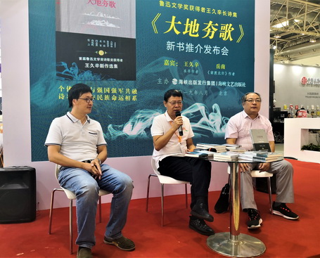發布會上,作者王久辛介紹了新書《大地夯歌》的整體構架及作品的創作理念,暢談了其以往作品波蘭文版、阿拉伯文版“走出去”的大致情況,并寄望該書能夠通過本次北京國際圖書博覽會走入更多國家,為更多讀者帶來希望與力量。作家岳南高度評價了王久辛的詩歌藝術成就以及該部作品的深度及悲憫的情懷。