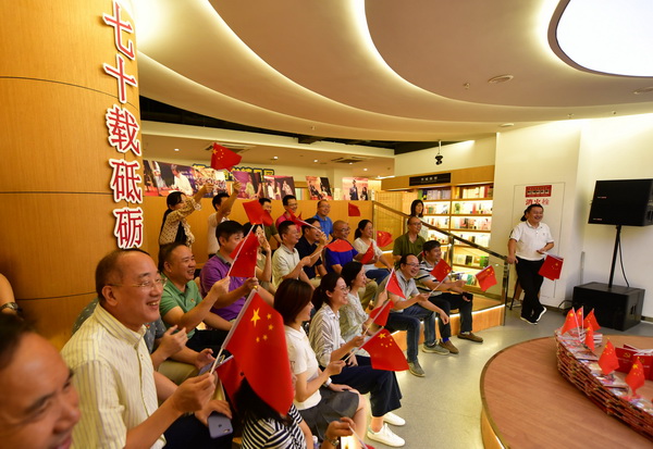 升國旗儀式結(jié)束后,大家一同來到鰲峰坊書城二樓,集中觀看新中國成立70周年大閱兵式。在觀看過程中,大家被氣勢磅礴的閱兵場面所震撼,紛紛表示,通過觀看大閱兵,民族自尊心、自信心得到極大提高,民族自豪感油然而生,切切實(shí)實(shí)感受到國家的強(qiáng)大。“祝福偉大祖國更加繁榮昌盛!”成了大家共同的心聲。