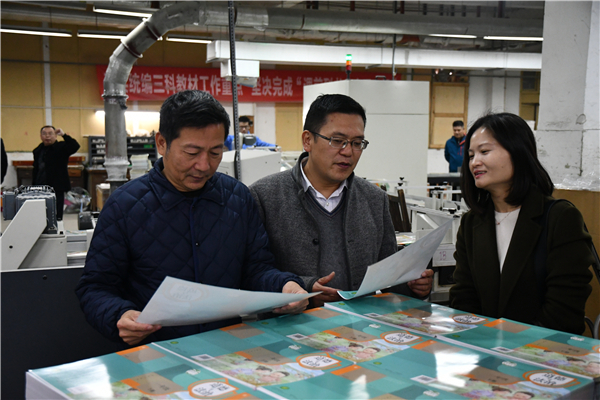嚴桂忠一行先后前往福建新華發行集團教材倉庫及福建新華聯合印務集團印裝車間,了解2020年春季國家統編“三科教材”印制發行工作開展情況。嚴桂忠指出,確保“課前到書,人手一冊”,是黨中央賦予教材建設戰線的一項重大政治任務,必須以精益求精的工匠精神做好教材印制工作,加強質量檢查,確保印裝高標準、環保無瑕疵。林義良強調,2020年春季教材印制發行工作面臨時間緊、任務重、要求高的嚴峻形勢,印制和發行部門作為保障“課前到書”的關鍵環節,要通力合作,提前謀劃,做好預案,確保教材印制發行工作高效有序推進。