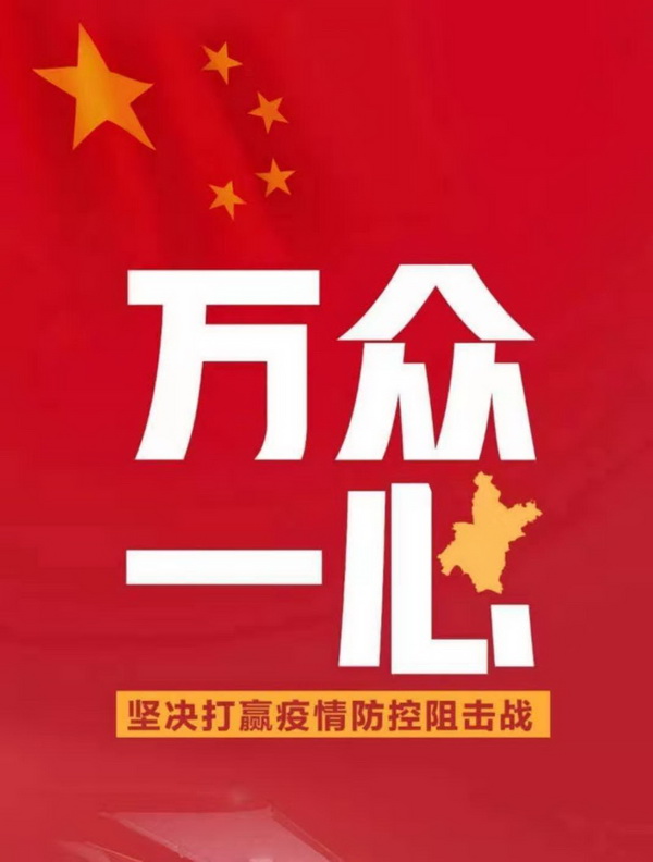 讓我們堅定信心、眾志成城、攜手并肩,以更加堅強的意志,更加嚴密的措施,更加有力的行動,共同筑牢防控疫情的銅墻鐵壁,為全國抗擊疫情大局作出應有的貢獻!