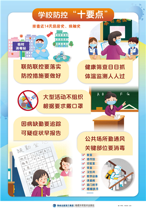 該掛圖內容以國家衛健委辦公廳、教育部辦公廳聯合頒布的學校新冠肺炎疫情防控技術方案為依據,由集團所屬福建科學技術出版社制作出版。掛圖用生動的圖示、簡練的文字向學校師生介紹了疫情防控中應知應會的預防知識,對學校做好疫情防控科普宣傳具有指導意義。