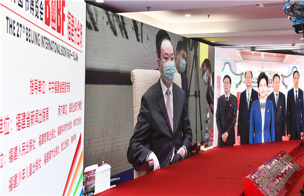 2020年9月26日上午10時,第27屆北京國際圖書博覽會開幕。受全球新冠肺炎疫情影響,北京國際圖書博覽會創辦34年來,開幕式首次采用線下舉辦、線上直播的方式。中共福建省委常委、宣傳部部長邢善萍,省委辦公廳、省委宣傳部、海峽出版發行集團、福建廣播影視集團等有關單位人員通過圖博會web端、APP端以及騰訊直播平臺等在線觀看了開幕式。上午11時左右,中共中央政治局委員、中央書記處書記、中宣部部長黃坤明通過騰訊視頻連線,視察了福建展區。中共福建省委常委、宣傳部部長邢善萍向黃坤明部長匯報了近年來福建新聞出版發行工作在推動學習宣傳貫徹新思想走深走實、重大主題出版、兩岸融合發展、優秀傳統文化走出去、海絲文化交融等五個方面取得的成效。