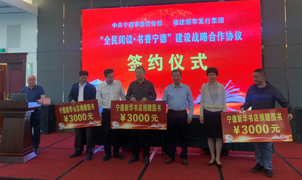 簽約儀式現場,何強與張蕉生共同簽訂了“全民閱讀·書香寧德”建設戰略合作協議。雙方將在加強頂層設計、深化合作領域、拓展閱讀平臺、優化閱讀質量、創新閱讀方式、提升服務水平等方面展開合作,著力構建優勢互補、資源共享的工作新格局。簽約儀式后,福建新華發行集團寧德分公司向霞浦縣第四小學和霞浦縣北壁鄉、長沙村贈送圖書。