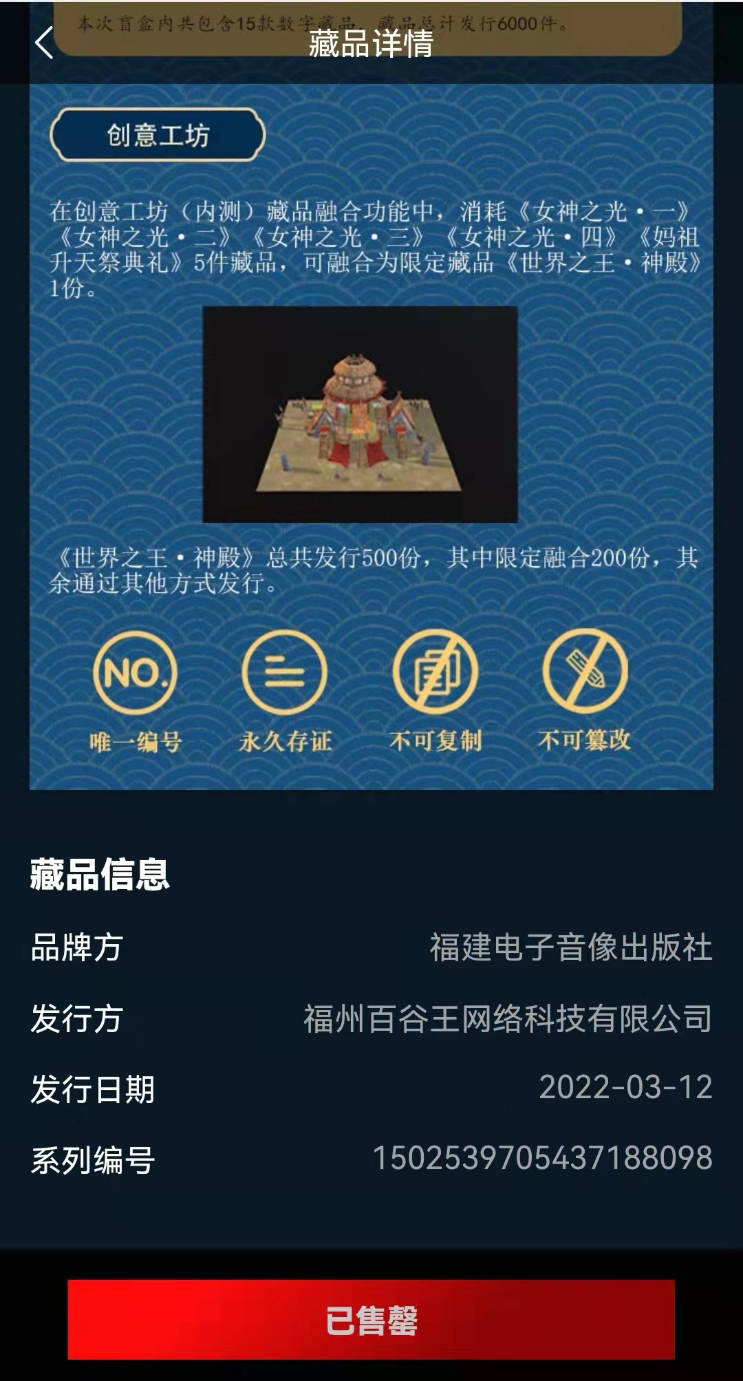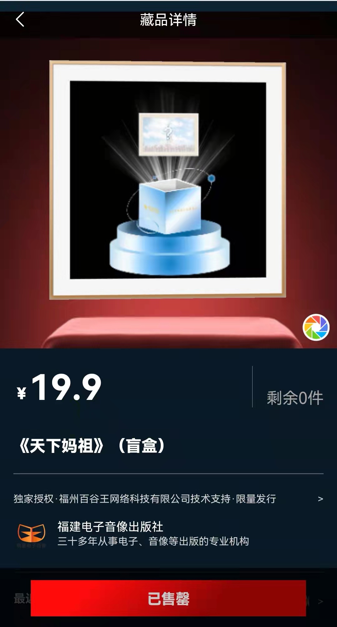 此次推出的“天下媽祖”(盲盒)精選自集團旗下福建電子音像出版社優(yōu)質自有版權,旨在利用區(qū)塊鏈技術可溯源、防篡改、不可復制的特點,永久記錄媽祖精神之美,推動“福”文化廣泛傳播、傳承。