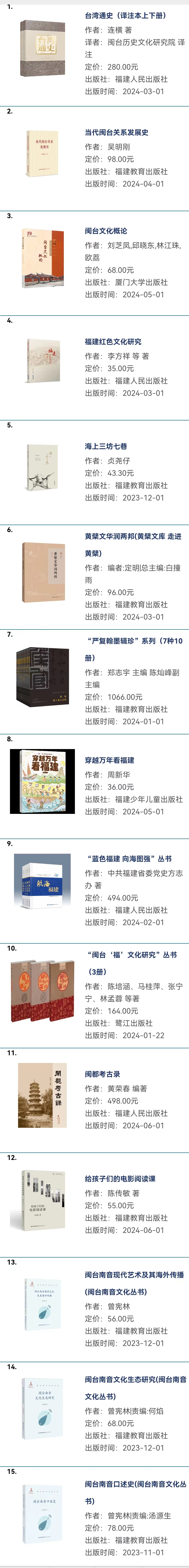 本次活動持續到7月底,百道網特推出閩版好書專題書單。排序110以前的,是今年1-6月的閩版好書、2022-2023年度閩版好書以及海峽出版發行集團評出的2023年度好書(后兩者入選圖書有重合)。以下依次為福建人民出版社、福建教育出版社、福建少年兒童出版社、福建科學技術出版社、福建美術出版社、海峽書局、海峽文藝出版社、鷺江出版社近年的較有影響力圖書。本書單也包含2024福建暑假讀一本書活動推薦圖書。