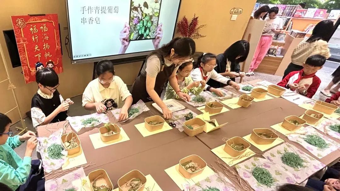 石獅分公司在書香獅城驛站舉辦“指尖青提香?皂暖映春柔”母親節主題手作活動。在學習趣味十足的香皂知識科普課后,孩子們化身“小小匠人”,與媽媽們攜手創作獨一無二的青提葡萄串香皂,以創意告白母愛。
