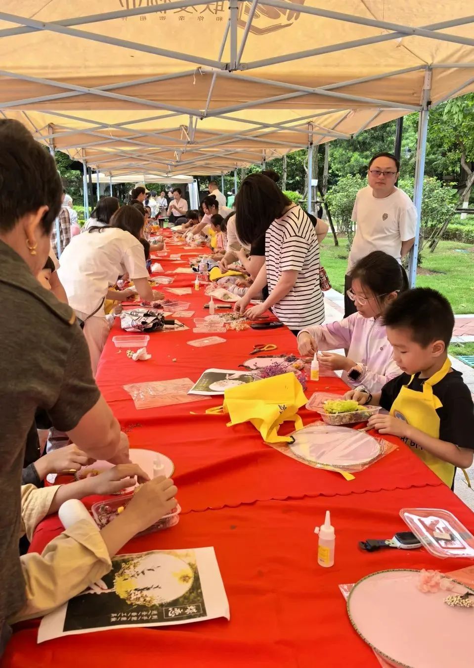龍海分公司“以‘花’之名,說愛你”活動獨具匠心,研學導師以環保的“不織布”創作材料,示范花卉縫制技巧。孩子們在家長協助下創作花卉,同時聆聽老師講述《詩經》草木、唐宋母愛詩詞,在穿針引線間體會“慈母手中線”的文化底蘊。