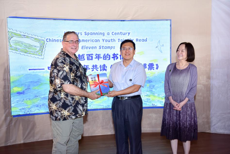 在中美青少年雙語(yǔ)共讀繪本《十一枚郵票》核心環(huán)節(jié),杰夫瑞•格林主席夫婦、美國(guó)加州大學(xué)的青年學(xué)子與福州的小學(xué)生們攜手登臺(tái),用中英雙語(yǔ)共同演繹這段跨越時(shí)空的情感記憶,開啟了一場(chǎng)別開生面的“跨越國(guó)界的共讀之旅”。