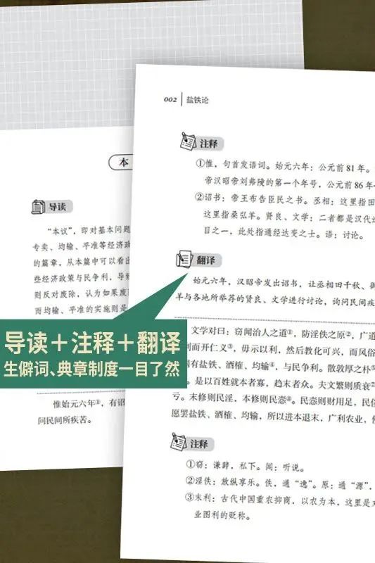 本書以權(quán)威底本為參考,對原文進行了詳細注釋和精準翻譯,力求通俗易懂,幫助讀者更好地理解古文。注釋匯集了歷代學者的研究成果,翻譯則遵循“信、達、雅”的原則,確保內(nèi)容的準確性和可讀性。無論是學術研究還是經(jīng)濟思想啟迪,《鹽鐵論》都是一本極具價值的經(jīng)典之作。