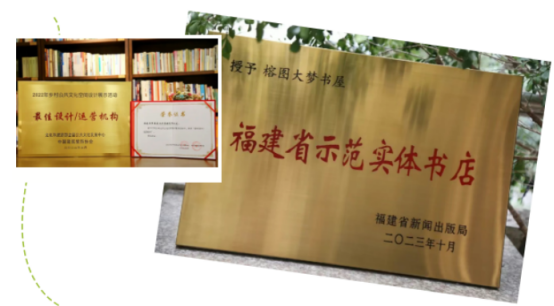 雙方探索創(chuàng)新不僅在新浪微博、大眾點(diǎn)評(píng)、抖音等新媒體平臺(tái)上收獲了眾多書友好評(píng),還獲得了諸多榮譽(yù)。“榕圖·大夢書屋”被評(píng)為“福建省示范實(shí)體書店”“福州最美公共文化新空間”;福州市圖書館鼓嶺分館在2022年鄉(xiāng)村公共文化空間設(shè)計(jì)展示活動(dòng)中獲評(píng)“最美鄉(xiāng)村公共文化空間(創(chuàng)新案例類)”,在2023年中國圖書館年會(huì)分會(huì)作為“優(yōu)秀主題館”宣傳展示,“邂逅·榕圖”閱讀驛站品牌獲2023年“首屆中國群眾文化品牌發(fā)展大會(huì) 公共文化空間品牌提名案例”等,此外,還先后獲得福建省和福州市“最美公共文化新空間”“中國最美山野書店”等榮譽(yù)。