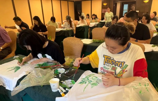 以漆為墨,以水作畫,輕輕轉動扇面,顏料便如同靈動的流云肆意暈染,大家手中的漆扇成為了獨一無二的“秋日信物”;從山水意境到自然之美,通過植物拓印創作,在立秋時節感受自然與藝術的交融,創作出獨具特色的非遺作品。
