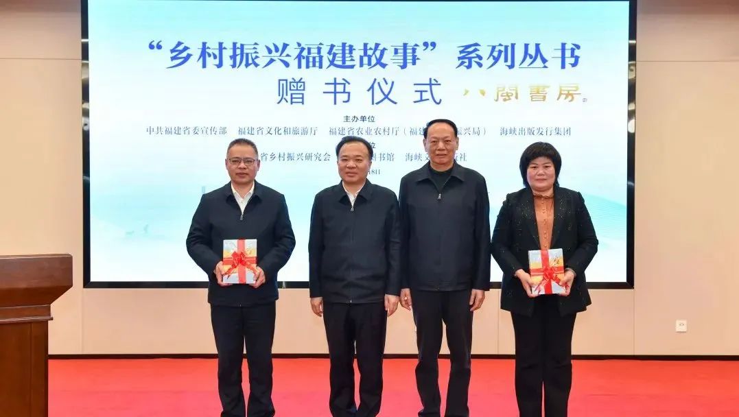 3月18日,由中共福建省委宣傳部、福建省文化和旅游廳、福建省農業農村廳(福建省鄉村振興局)、海峽出版發行集團主辦,福建省鄉村振興研究會、福建省圖書館、海峽文藝出版社承辦的“鄉村振興福建故事”叢書贈書活動在福建省圖書館舉行。省委常委、宣傳部部長張彥,省人大常委會原副主任、省鄉村振興研究會會長潘征共同向福建省圖書館“八閩書房”贈送“鄉村振興福建故事”系列叢書。活動由省委宣傳部常務副部長、省電影局局長王建南主持,海峽出版發行集團黨委書記、董事長黃葦洲等領導出席活動。