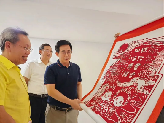 代表團一行拜訪馬來西亞砂拉越州副總理拿督阿瑪沈桂賢,向沈桂賢贈送《習近平談治國理政》第五卷和《擺脫貧困》(英文精裝版),并向州政府贈送“絲路書香 • 四海傳福”剪紙卷軸。雙方就數字教材推廣、“云書館”項目落地和版權合作等事宜展開交流,并達成初步合作意向。中國駐古晉總領事館總領事邢偉平、副總領事宋長虹和古晉南市市長拿督黃鴻圣,古晉中華文化藝術促進協會署理會長沈鉑斯、副會長陳宗榮等嘉賓參加會談。