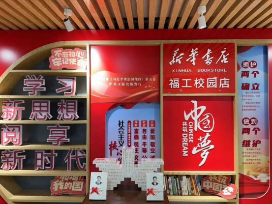 “新華書店·福工校園店”精心組織了形式多樣的主題展陳與宣傳活動