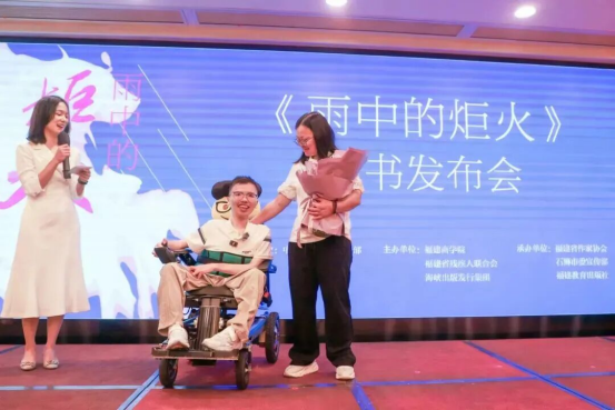10月20日上午,由福建省委宣傳部指導(dǎo),福建商學(xué)院、福建省殘疾人聯(lián)合會(huì)、海峽出版發(fā)行集團(tuán)主辦,福建省作家協(xié)會(huì)、石獅市委宣傳部、福建教育出版社承辦的《雨中的炬火》新書(shū)發(fā)布會(huì)在福州舉行。福建省委宣傳部副部長(zhǎng)、一級(jí)巡視員陳添貴,福建商學(xué)院黨委書(shū)記吳訪益,福建省殘疾人聯(lián)合會(huì)黨組成員、副理事長(zhǎng)鄭海生,海峽出版發(fā)行集團(tuán)黨委委員、副總經(jīng)理陳遠(yuǎn)出席發(fā)布會(huì)。