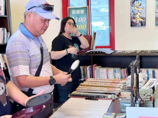 除了常規(guī)展覽外,金門首站還同步開啟文化互動(dòng)環(huán)節(jié),由來(lái)自臺(tái)灣的福建省級(jí)非物質(zhì)文化遺產(chǎn)代表性傳承人黃守堃?guī)ьI(lǐng)金門民眾體驗(yàn)福州漆器文化,通過(guò)手作活動(dòng),讓金門民眾了解漆藝,感受中華非遺文化的濃厚魅力。